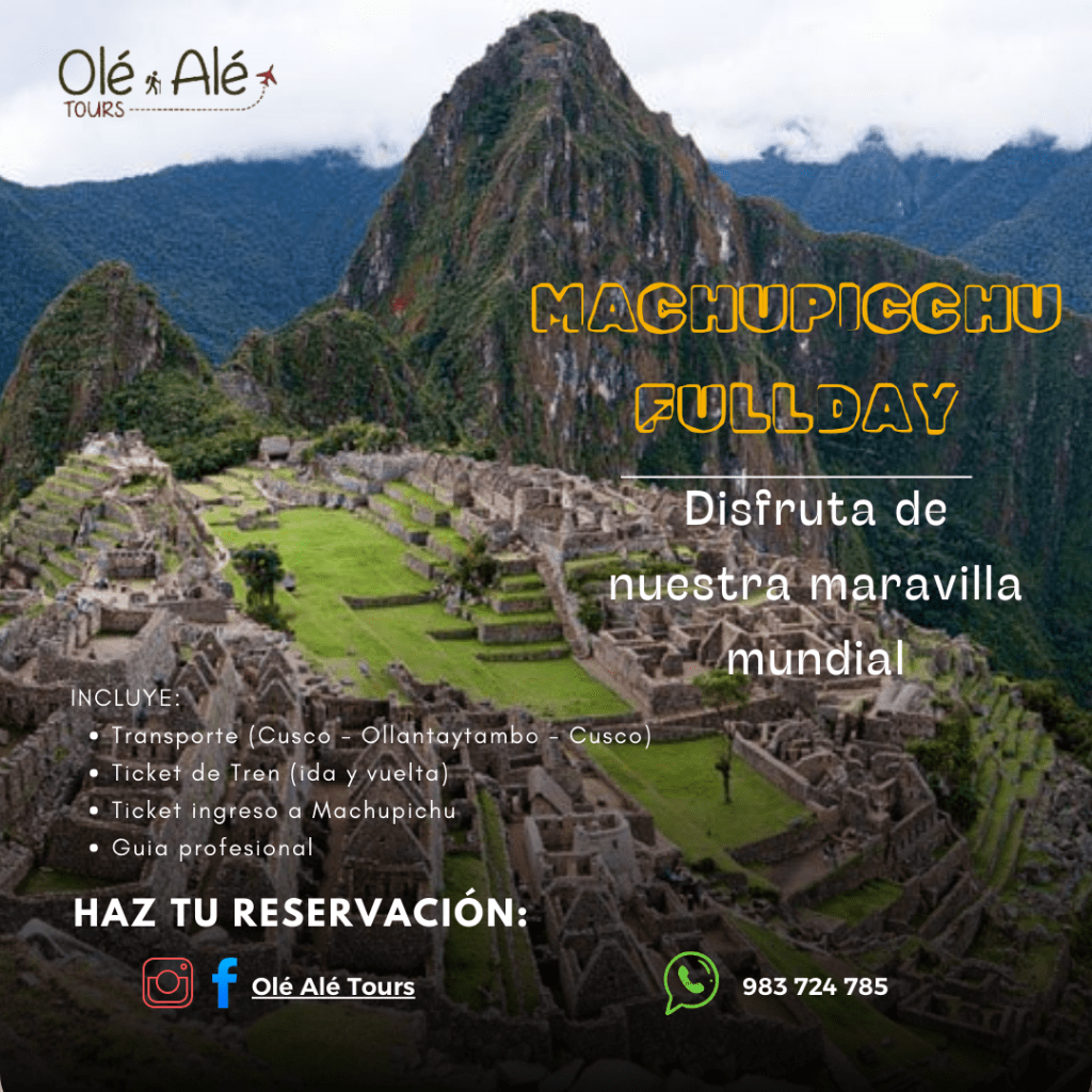 El Tour Machu Picchu Full Day es una experiencia única e inolvidable que te llevará a explorar una de las maravillas más impresionantes del mundo, la Ciudad Perdida de los Incas. Este tour está diseñado para aquellos que desean descubrir toda la magia y el misterio de Machu Picchu en un solo día, disfrutando de un recorrido completo por este emblemático sitio arqueológico.